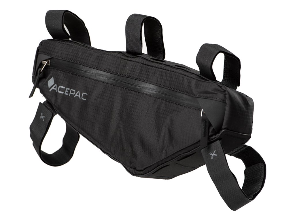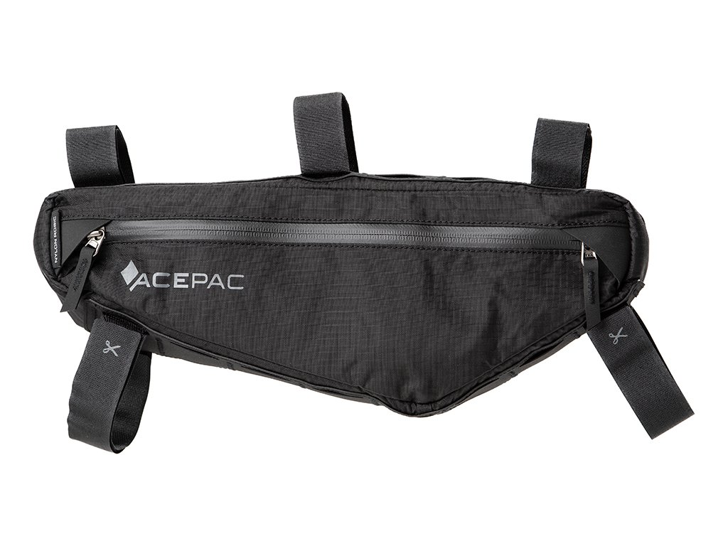 Rámová taška Triangle frame bag MKIII značky Acepac má vodeodpudivý zips YKK s dvoma jazdcami pre ľahší prístup k vybaveniu. Vnútri nájdete dve sieťové vrecká, ktoré môžete využiť na malé drobnosti.