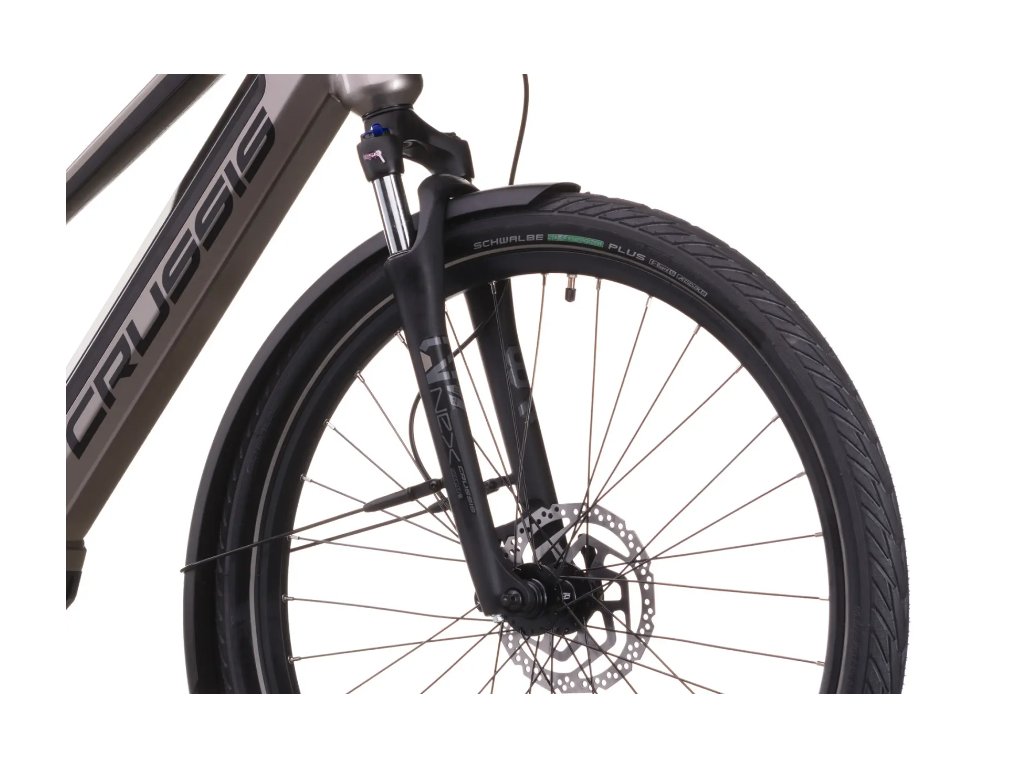 Vydajte sa na dobrodružstvo na modernom trekingovom elektrobicykli CRUSSIS e-Savela 7.11 s ľahkým rámom a výbavou, ktorá vás podporí na každej ceste. Či už vás láka mesto, štrk alebo dlhé výlety po lesných chodníkoch, tento elektrobicykel vám ponúka vyvážený výkon a pohodlie v kompaktnom dizajne. Dizajn navrhnutý v nadčasovej farebnej kombinácii podčiarkuje dynamiku a praktickosť tohto elektrobicykla.