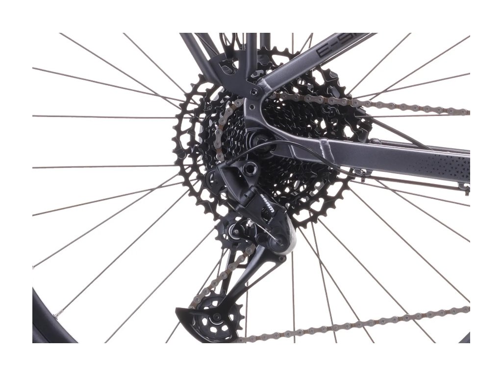 Elegantná integrácia batérie do rámu zaisťuje nielen štýlový vzhľad, ale aj nižšie ťažisko elektrobicykla, čo prispieva k stabilite a lepšej ovládateľnosti v rôznych terénoch. Vzduchová vidlica ROCKSHOX FS Paragon Gold RL Solo Air 700C (zdvih 65 mm) zaisťuje pohodlie a spoľahlivo absorbuje nerovnosti na ceste.