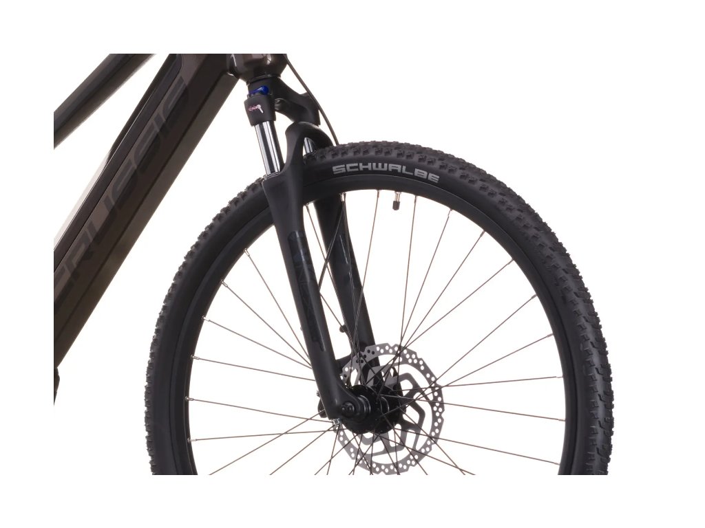 Bicykel je vybavený vidlicou SUNTOUR NEX HLO DS 700c s uzamknutím, ktorá účinne tlmí nerovnosti, a pneumatikami SCHWALBE Smart Sam, ktoré odolajú cyklotrasám a spevneným lesným cestám. Hydraulické brzdy SHIMANO BR-MT200 poskytujú spoľahlivé brzdné vlastnosti vo všetkých situáciách.