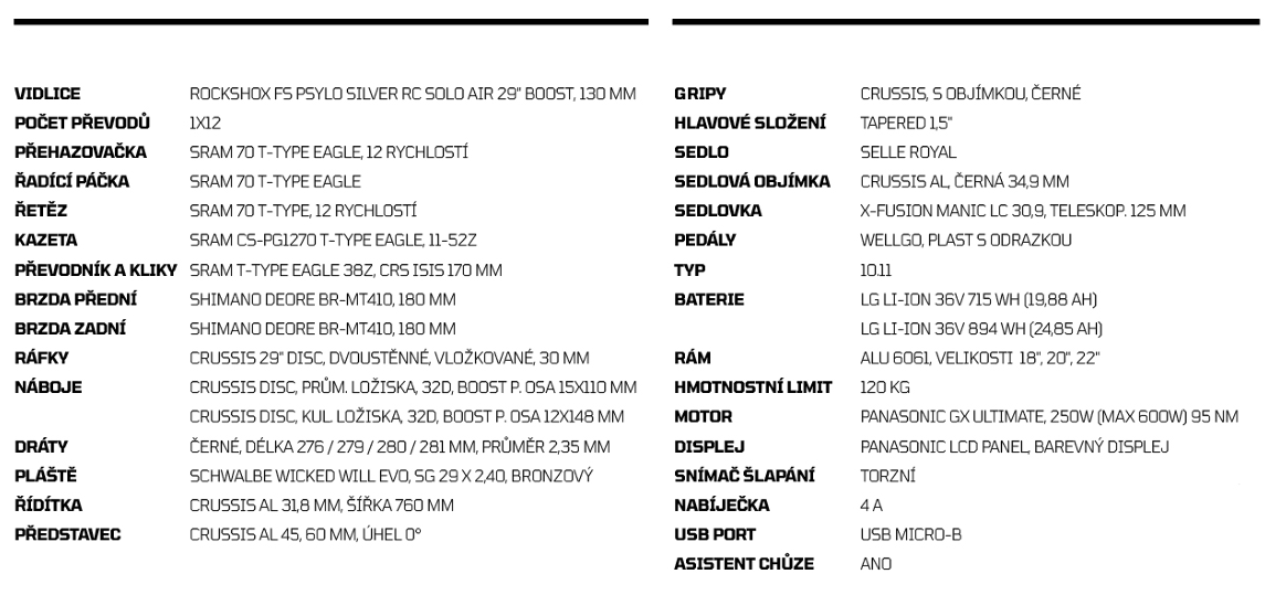 CRUSSIS ONE-Largo 10.11 je ideálnou voľbou pre skúsených jazdcov, ktorí vyžadujú výkon, spoľahlivosť a intuitívne ovládanie aj v tom najnáročnejšom horskom teréne.