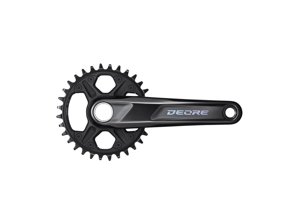 Dvojdielne kľuky DEORE s pevnou oskou určené pre 12 rýchlostné radiace systémy. Uchytenie prevodníka na kľuky Direct Mount pomocou jednej matice. Špeciálny profil zubov Dynamic Chain Engagement+ zlepšuje držanie a chod reťaze na prevodníku. Balené, bez stredových ložísk. S 32 zubovým prevodníkom bez krytu. Reťazová linka 52mm. Vhodný pre rámy so šírkou zadnej stavby 135/142/148mm.
