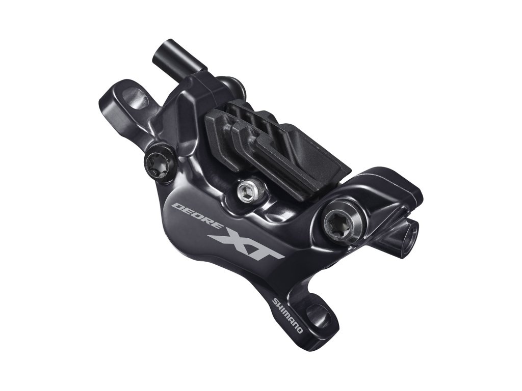 Hydraulický, štvorpiesty brzdový strmeň SLX. Znižuje vibračný hluk rotora. O 10% vyšší brzdný výkon oproti BRM8000. Spoj hadička/strmeň - Banjo. Kompatibilné s brzdovými platničkami Ice Technologies. Brzdové platničky N03A. Banjo spojovacia skrutka je súčasťou balenia.